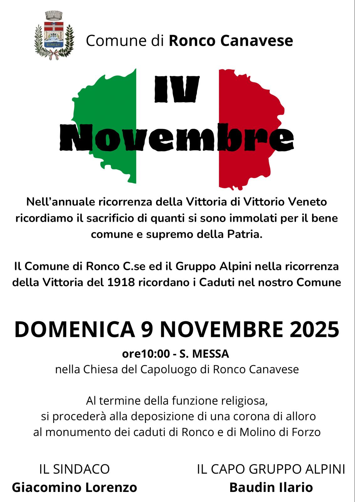 Il Comune di Ronco C.se ed il Gruppo Alpini nella ricorrenza della Vittoria del 1918 ricordano i Caduti nel nostro Comune.