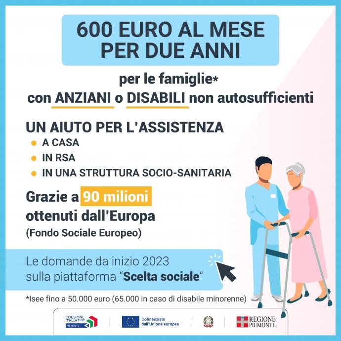 Il buono domiciliarità è un contributo mensile erogato dalla Regione del valore di 600 euro, riconosciuto al massimo per 24 mensilità, spendibile per l'acquisto di servizi di assistenza familiare o di assistenza educativa nel caso di minori, a favore di persone non autosufficienti residenti in Piemonte.