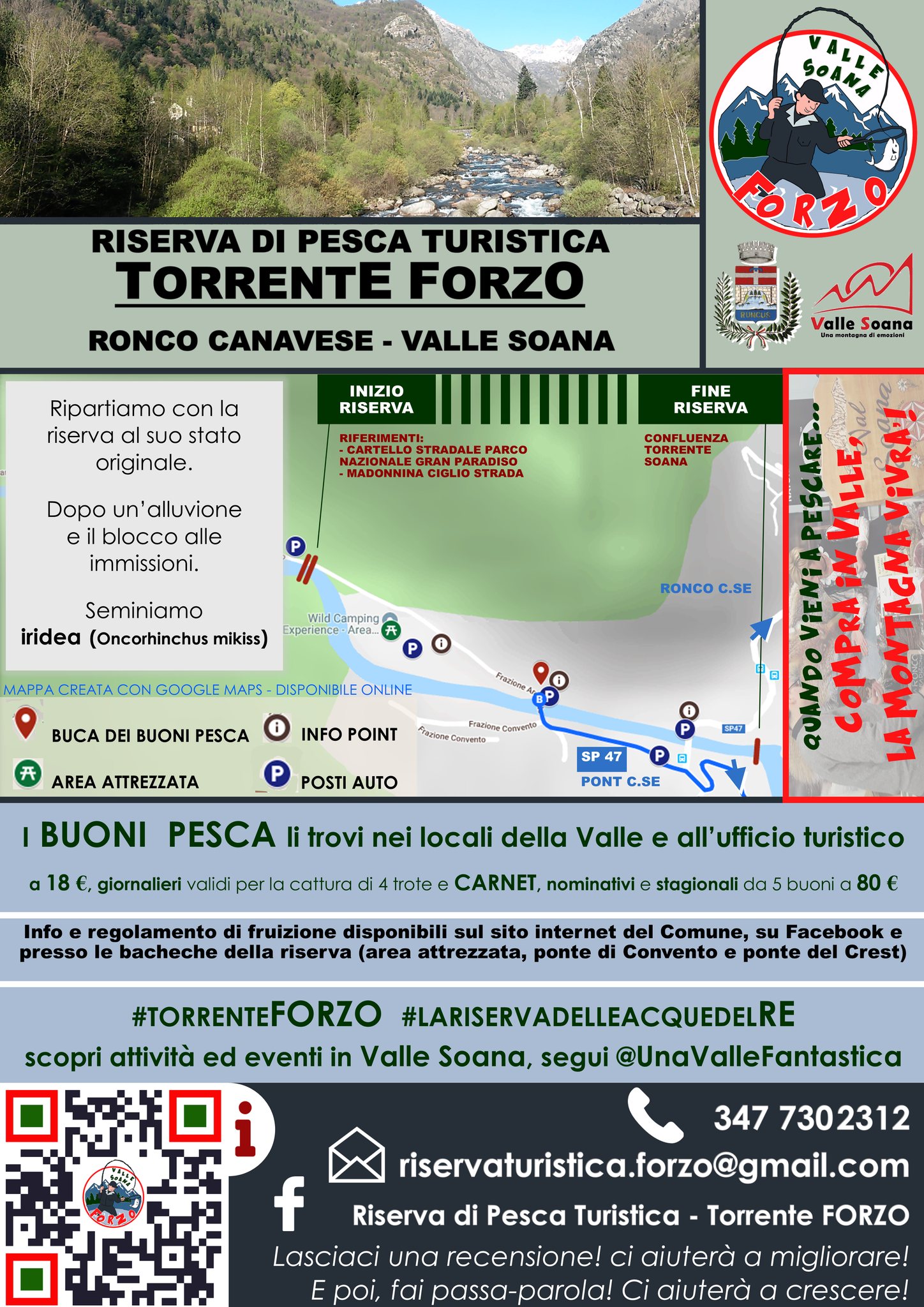 Da maggio 2017 ha riaperto la RISERVA DI PESCA TURISTICA COMUNALE del torrente Forzo.