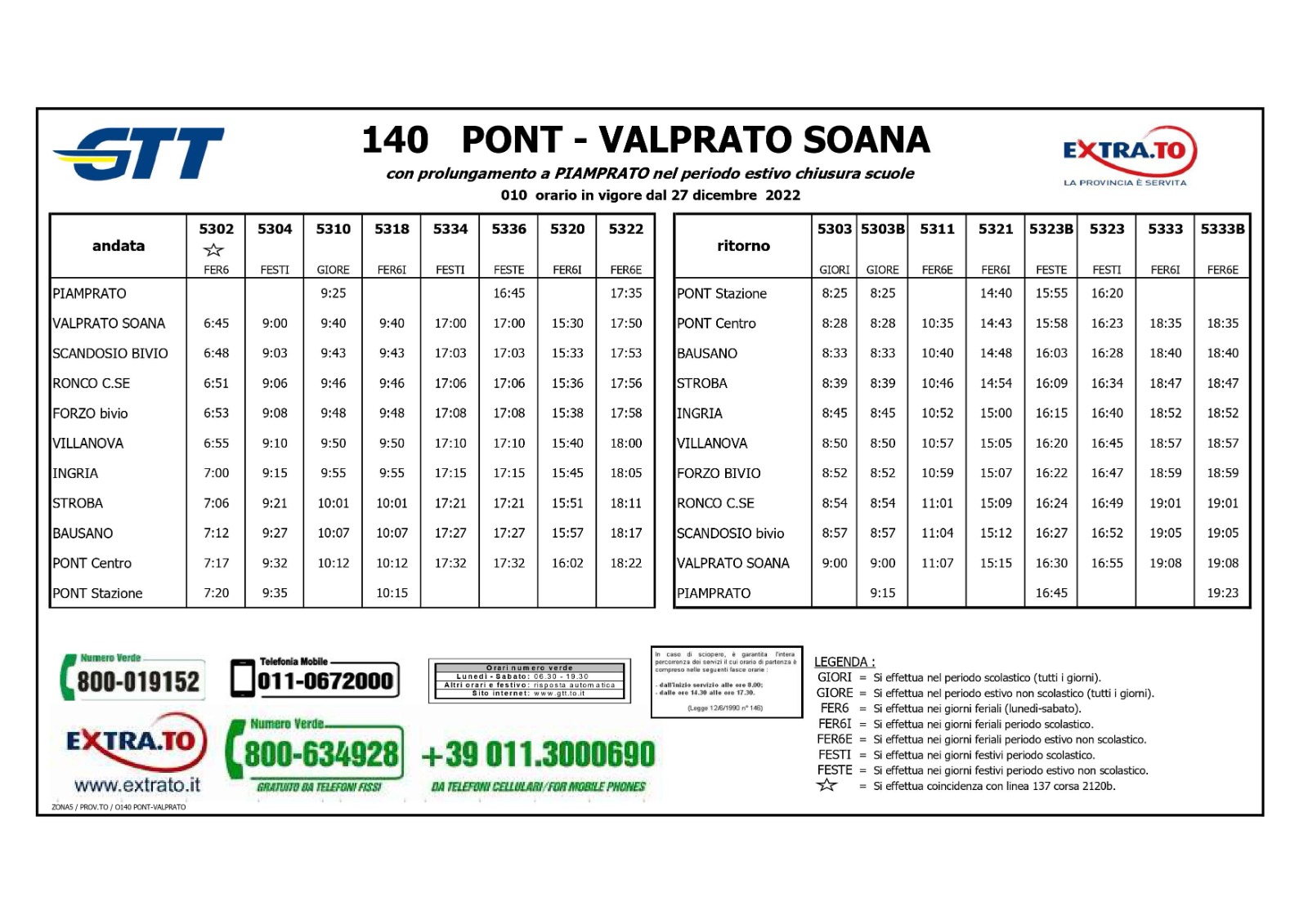 Per favorire la mobilità nell'alta Valle Soana, verrà applicato l'orario versione 010 del 27 dicembre 2022, con le seguenti corse modificate e gli orari anticipati: